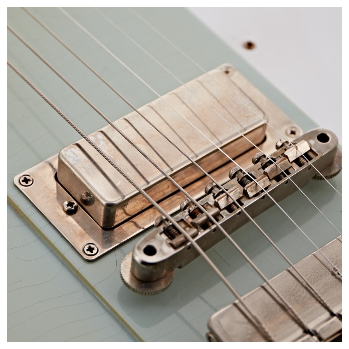 The Gibson Custom 1963 Firebird V Maestro Vibrola Heavy Aged has been painstakingly crafted to capture the look, feel, and soul of an original ’63 model. Finished in Antique Frost Blue and treated with the Murphy Lab's heavy ageing process, the guitar carries the vibe of a well-played vintage instrument that's seen decades of stage time. From lacquer checking to aged nickel hardware, every detail has been handled with expert precision to make it feel like a guitar that's lived a lifetime of music. It's not just about looks either: the ageing process enhances the feel, giving it that broken-in comfort right out of the case.
