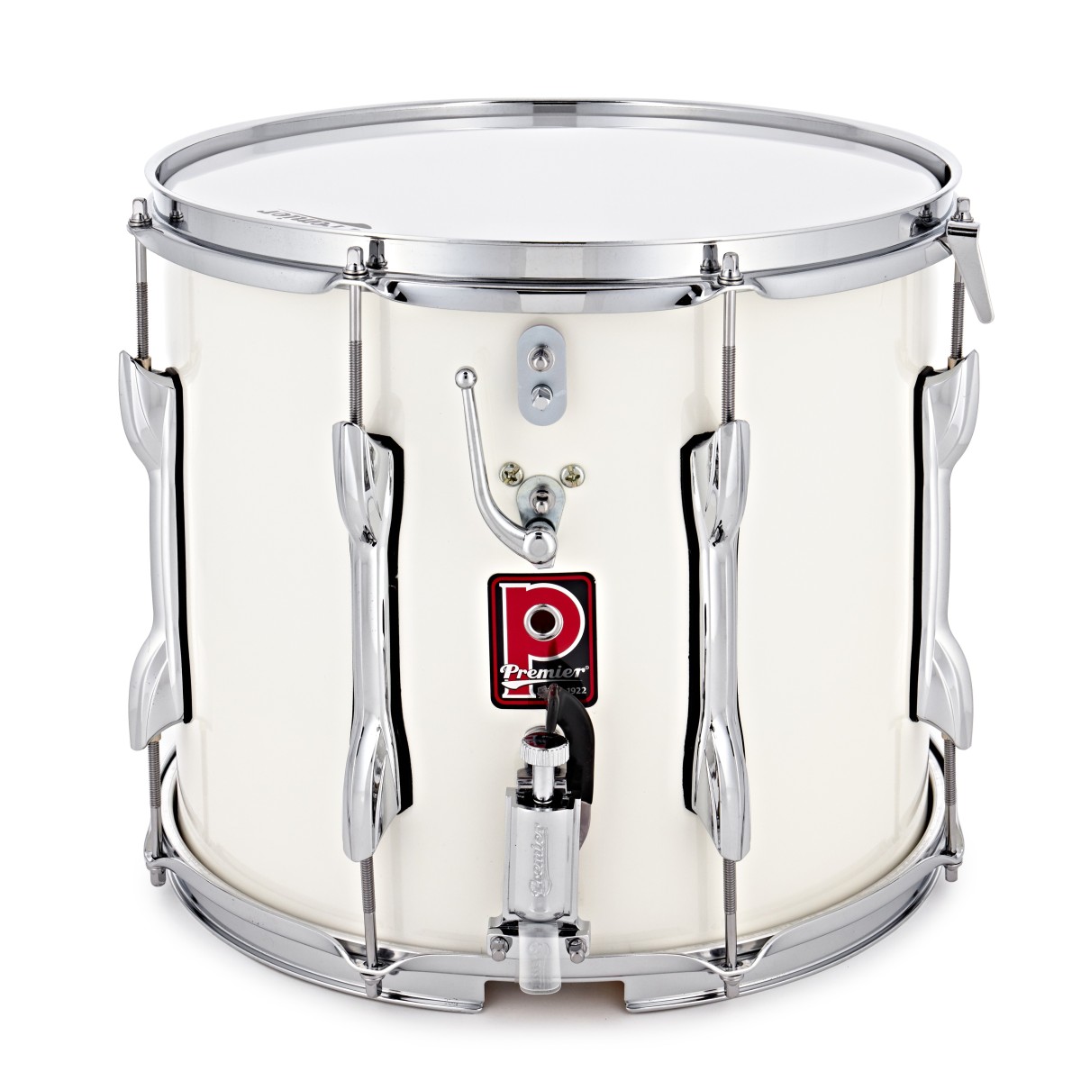 From brass bands to boy brigades, and even football crowds. The inclusion of a top snare mechanism adds to the 14" x 12" Traditional Marching Snares' versatility, ensuring it's suitable for a broad range of musical styles and marching disciplines. This can be thrown on or off to achieve unique crisp, bold tones when on the field. Boasting a stylish ivory white lacquer finish, its assembly makes it the perfect blend of heritage and technical innovation, keeping it well in traditional with Premier's values.
