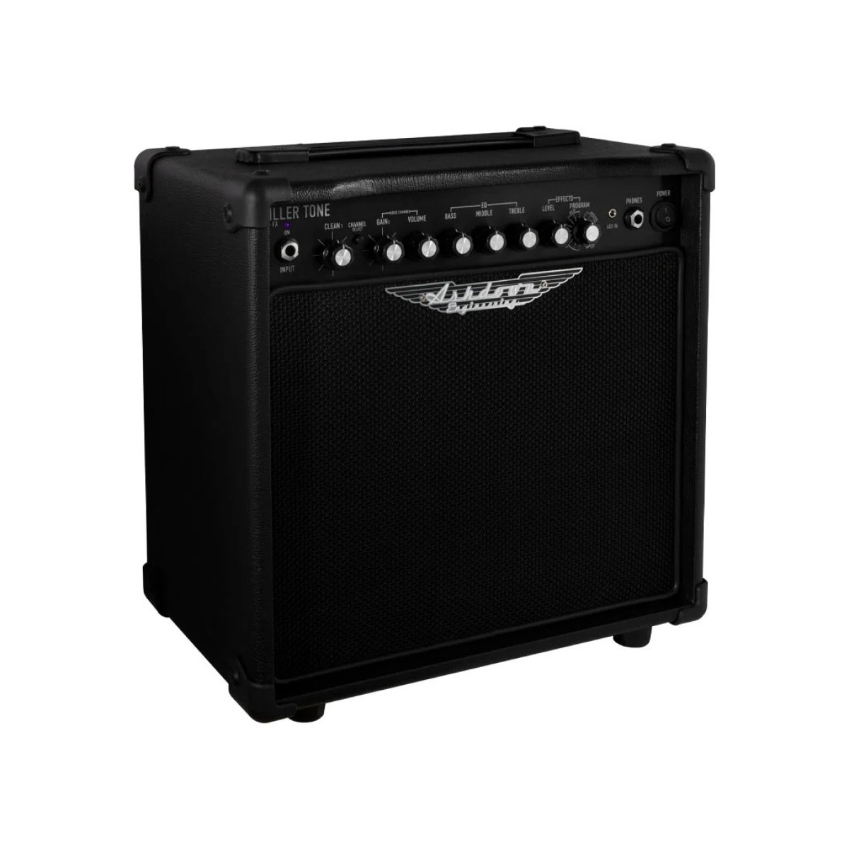 The Ashdown Killer Tone KT-15FX is a compact practice amp made for guitarists who want tube-inspired tone and all-in-one functionality at home or in a personal studio. With 15 watts of transistor-based power and an 8-inch speaker, it offers warm, responsive sound ideal for daily playing. Two channels give you access to both clean and overdriven tones, while the 16-way digital effects section lets you shape your sound using built-in reverbs, delays and more.