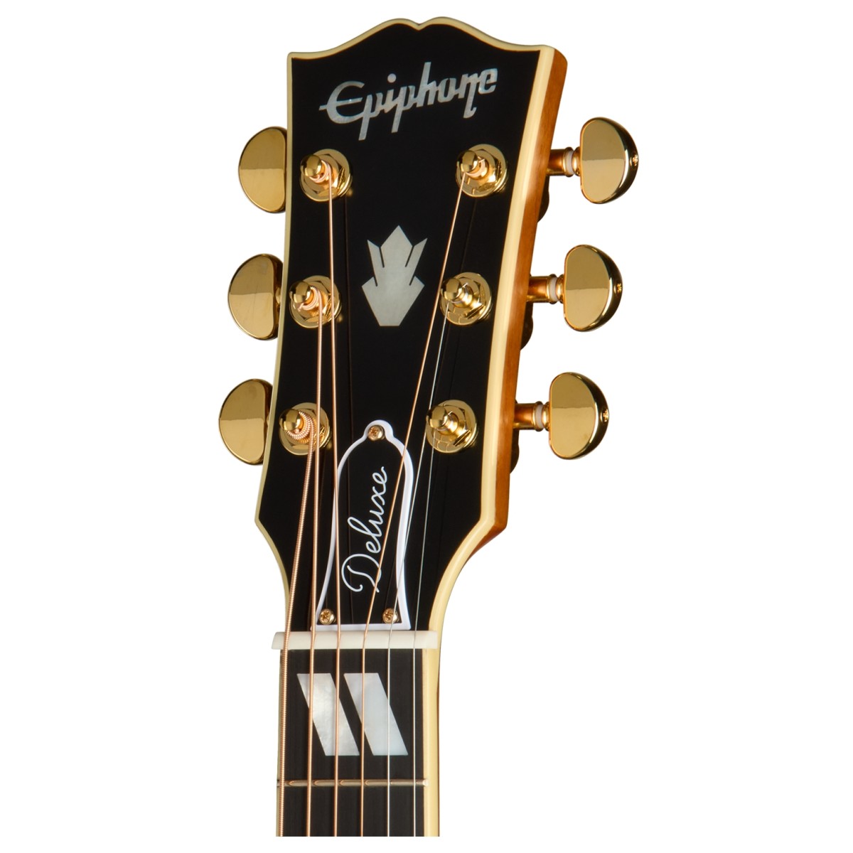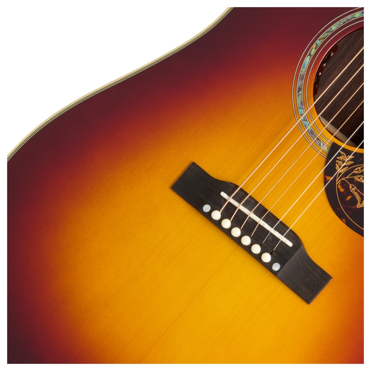 Elegant touches include mother-of-pearl split parallelogram inlays, a gold-etched Hummingbird pickguard, and gold Grover tuners on a classic Gibson-style headstock. The onboard L.R. Baggs VTC Bronze pickup ensures a clear, natural tone when plugged in, while the included Epiphone Protector Ultralite case provides lightweight yet durable protection for travel and storage.