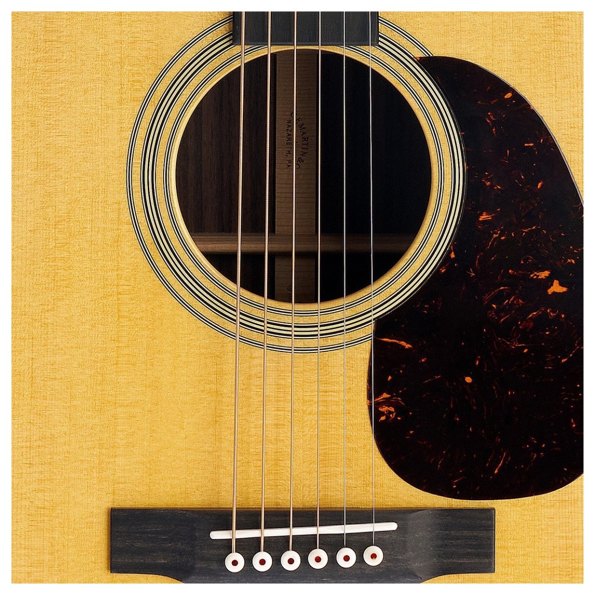 The Martin D-28E Refreshed features Golden Era Sitka spruce bracing, a design inspired by Martin's most sought-after guitars from the late 1920s to 1942. This forward-shifted, scalloped bracing pattern allows the top to resonate more freely, producing a rich, open tone with enhanced sustain. The result is a warm, vintage-inspired sound that continues to improve with age, delivering a dynamic range ideal for both strumming and fingerpicking styles.