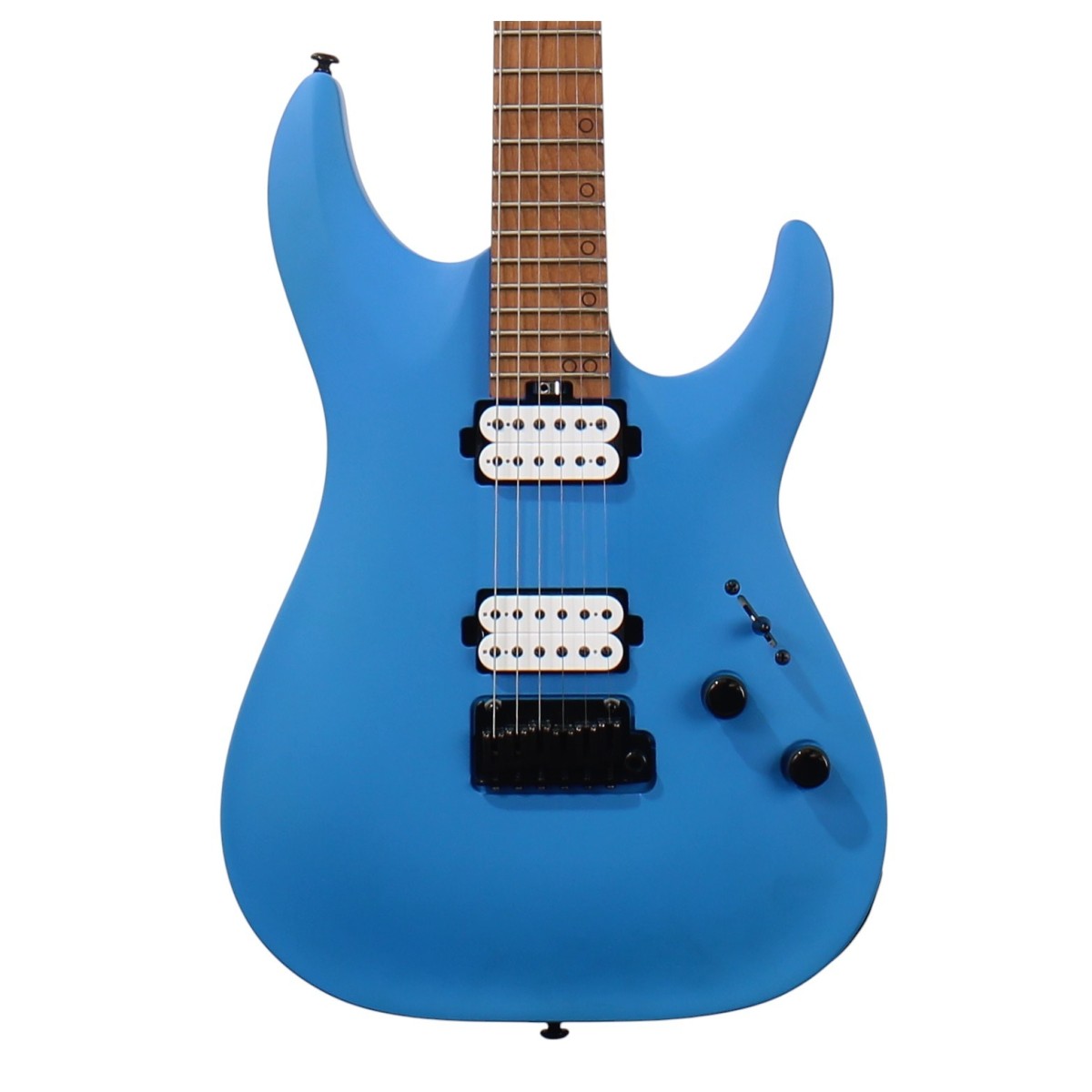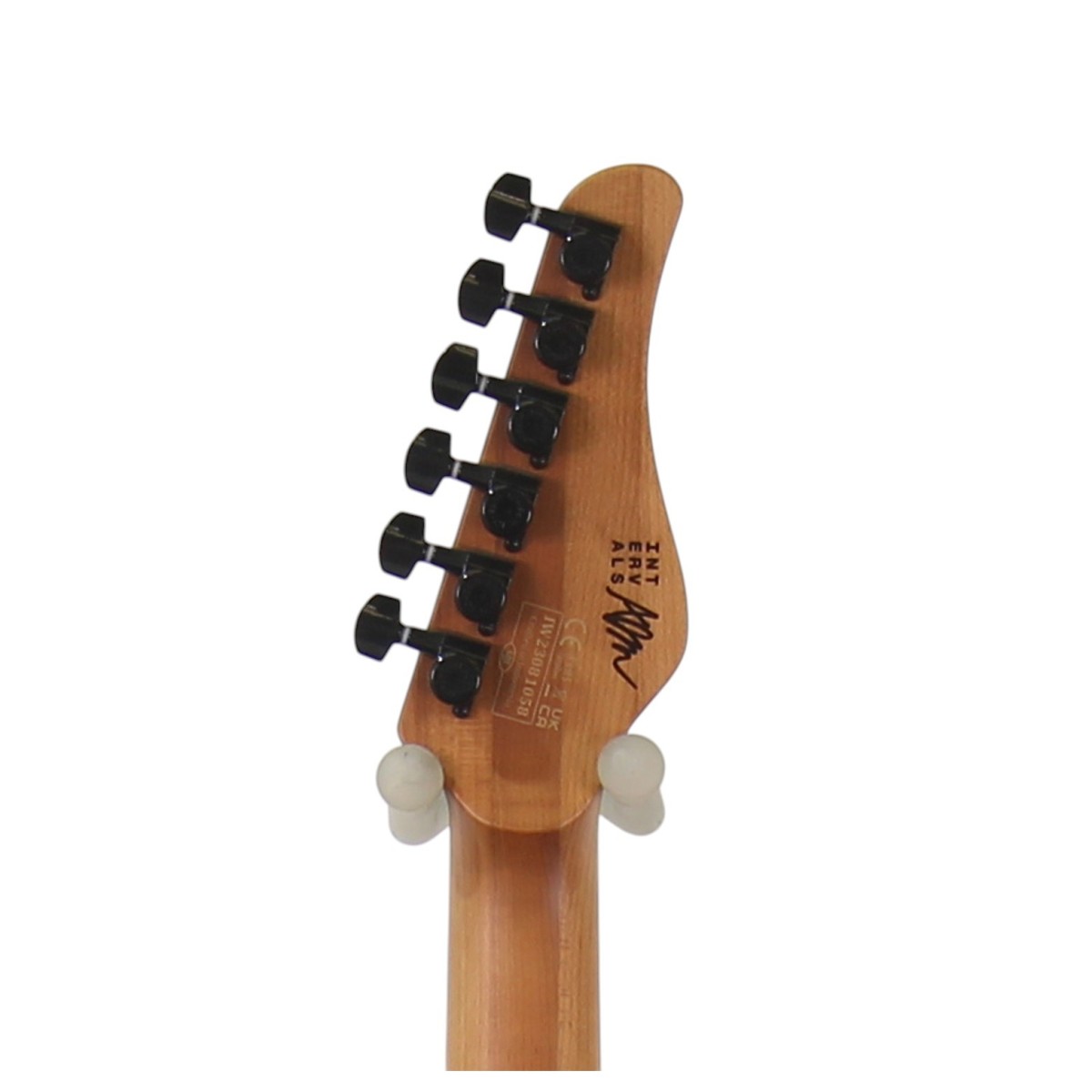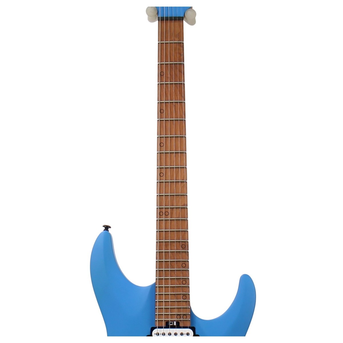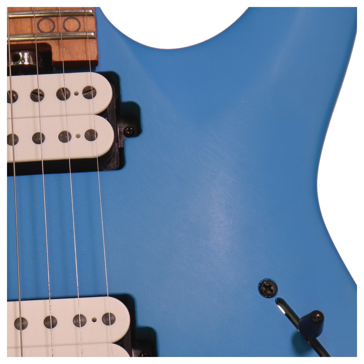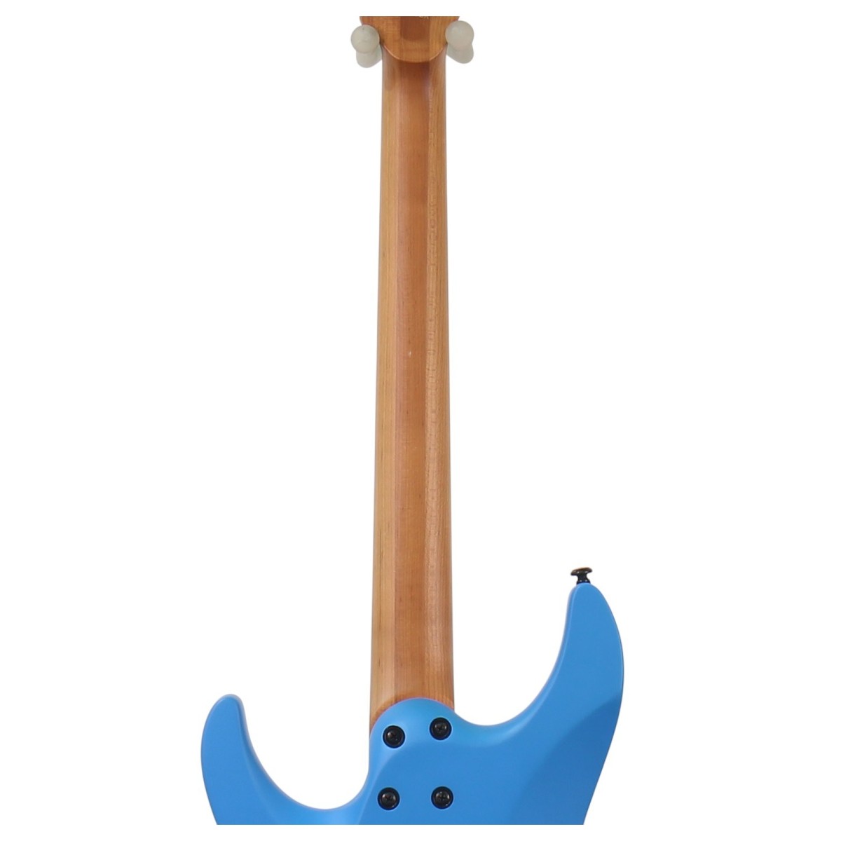 The Schecter Aaron Marshall AM-6 is a visually stunning guitar in Satin Royal Sapphire, built to the exacting specifications of Aaron Marshall of Intervals. This signature model features a sleek, roasted hard maple neck fortified with carbon fibre reinforcement rods, ensuring superior stability and responsiveness. The unique Black Offset/Reverse Circle inlays atop the roasted maple fretboard not only add a striking aesthetic touch but also facilitate easy navigation across the fretboard.