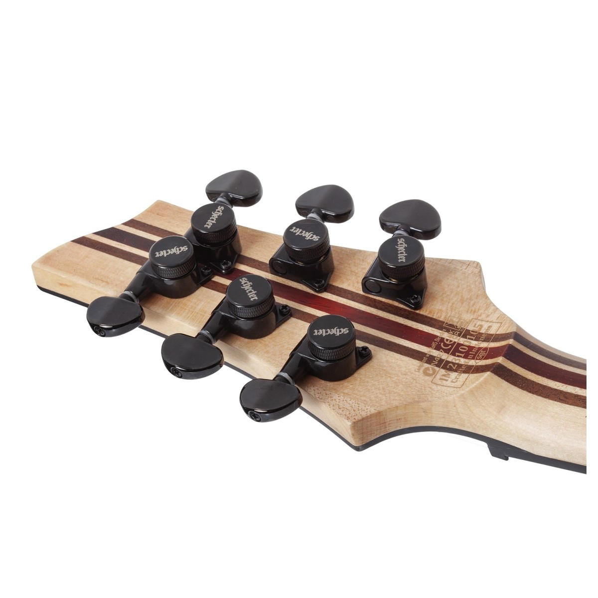 The 7-ply neck, reinforced with carbon fibre rods, ensures long-term stability and durability, keeping your guitar in peak condition even with frequent use. The Schecter locking tuners and Graphtech Black Tusq XL nut help maintain tuning stability, so you can play confidently without constant tuning adjustments.