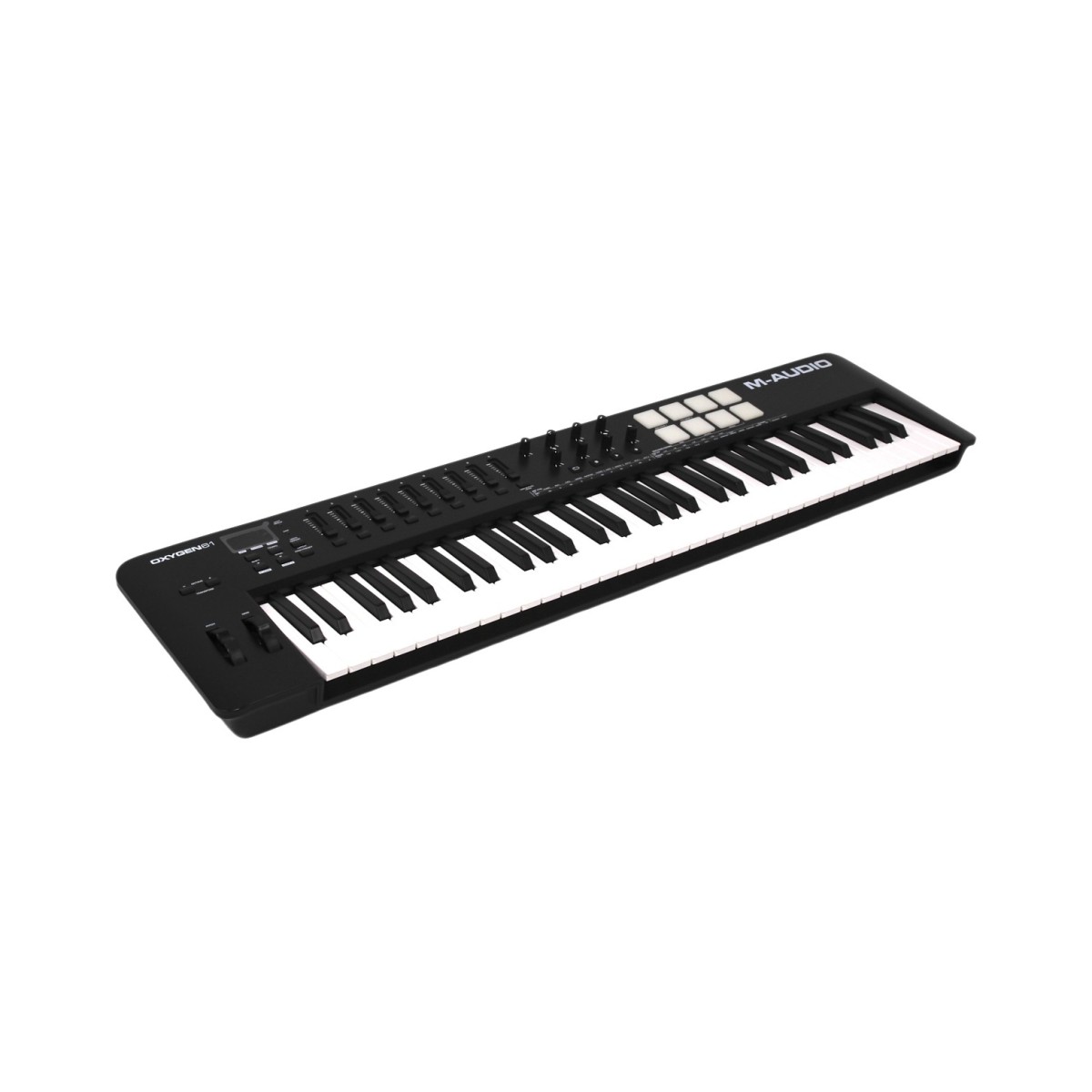 The M-Audio Oxygen 61 MKV controller includes essential and powerful features to help you produce music seamlessly with hassle-free DAW integration. With an array of assignable pads, knobs and nine faders, the Oxygen 61 MKV gives you complete control over your software, allowing you to remain creative without the boundary of time-consuming tedious mouse clicking.