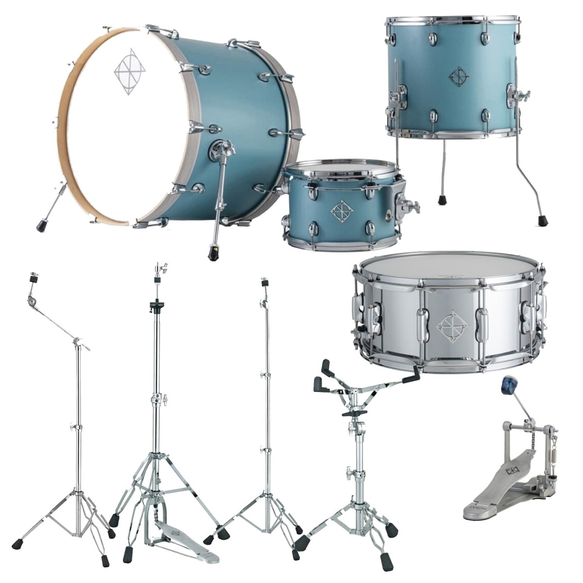 Haga clic aquí para comprar Dixon Kit de batería Cornerstone Hybrid 22'' con herrajes y acero Snare, Azul Quetzal satinado y productos relacionados