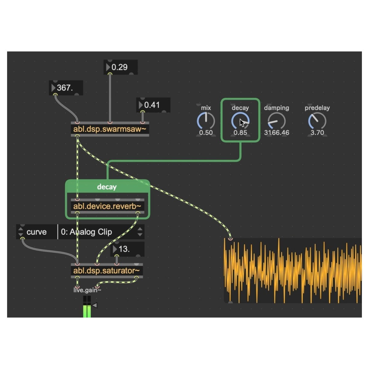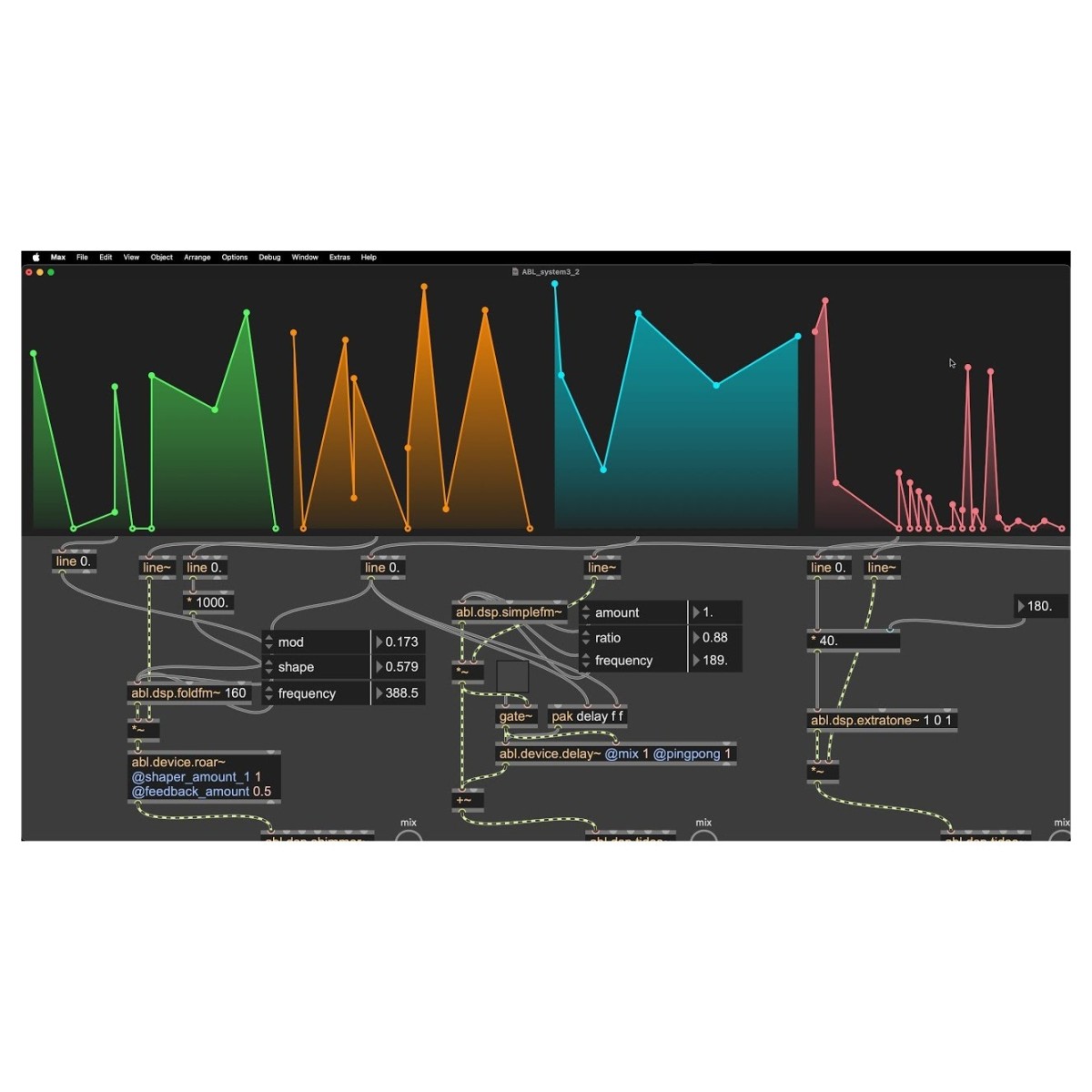 Max 9 incluye un conjunto de objetos basados en la biblioteca ABL DSP de Ableton de ABL, que ofrece una ruta parcheable a los comportamientos que se encuentran en los conocidos dispositivos Live. Introduce módulos como abl.device.roar para una saturación agresiva o