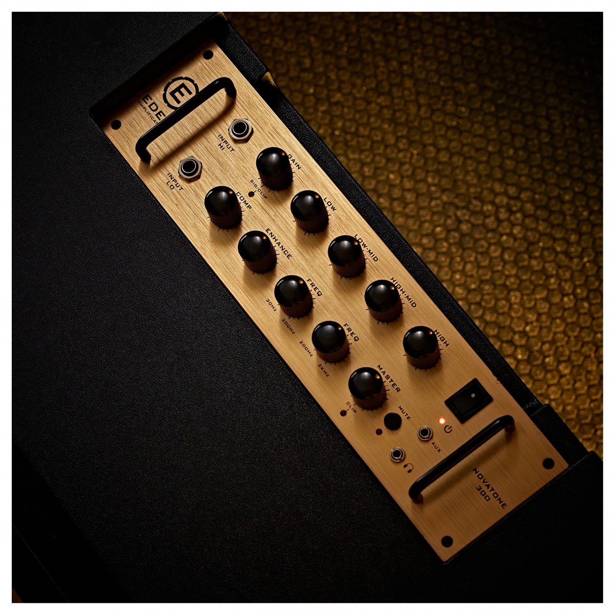 Los profundos controles de ecualización del Freshmanne 300 constan de cinco mandos: Low, Low-Mid, High-Mid y High, con los dos ajustes Mid-EQ vinculados a los controles Mid-Sweep para cortes y realces precisos. La mundialmente conocida función "Enhance" de Eden también está presente en el Freshmanne 300. Situado junto a la sección de EQ, este sencillo pero efectivo control realza las frecuencias graves y agudas a la vez que recorta los medios, ofreciendo una claridad y presencia inigualables en su tono.