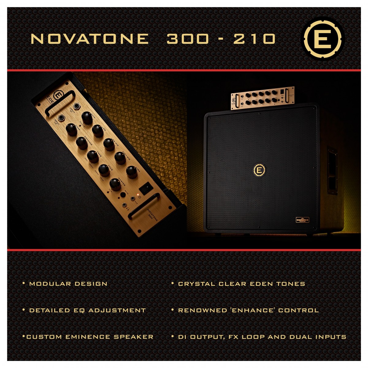 Fundada en 1976, Eden Amplification es instantáneamente reconocible para los bajistas de todo el mundo. Ahora reimaginado para modern player, el tono distintivamente claro y sin color de Eden vuelve triunfante, brillando a través de una gama de amplificadores de bajo de alta fidelidad, cajas y pedales adecuados para conciertos, grabaciones y ensayos.