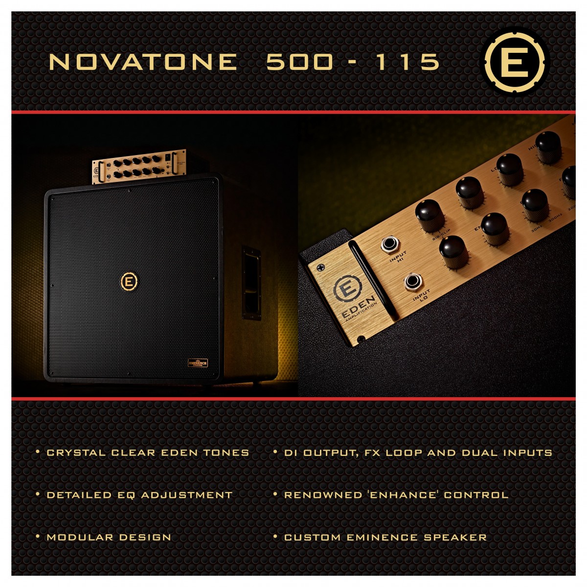 Fundada en 1976, Eden Amplification es instantáneamente reconocible para los bajistas de todo el mundo. Ahora reimaginado para modern player, el tono distintivamente claro y sin color de Eden vuelve triunfante, brillando a través de una gama de amplificadores de bajo de alta fidelidad, cajas y pedales adecuados para conciertos, grabaciones y ensayos.