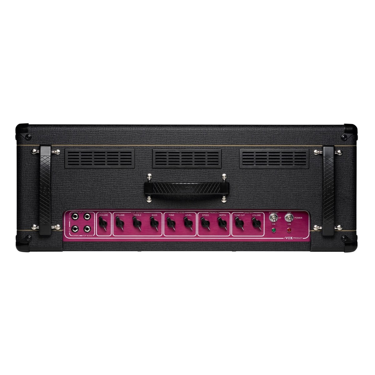 El combo AC30 Custom utiliza 3 válvulas de previo 12AX7 y un par de válvulas EL84 para alimentar los dos altavoces de 12" de Celestion. Todos los modelos de este Vox custom series ofrecen una toma de salida conmutable de 8/16 ohmios para alimentar una caja acústica externa, para aquellos momentos en los que necesite hablar con un poco más de autoridad; el uso de esta toma silenciará los altavoces internos. También puede crear un sonido más completo utilizando una caja acústica adicional de 16 ohmios junto con los altavoces internos a través de la segunda toma de extensión del AC30 Custom.