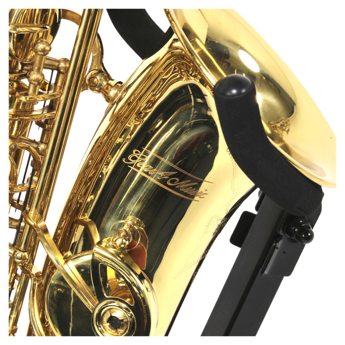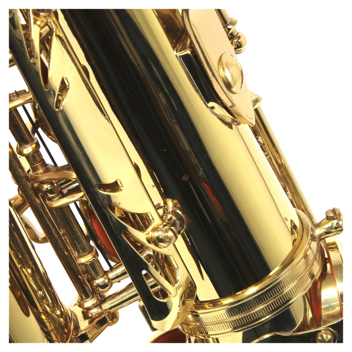 Este instrumento se ha diseñado teniendo en cuenta la asequibilidad, la durabilidad y la comodidad. Su cuerpo está totalmente acanalado para hacerlo más robusto y soportar así las demandas de la práctica habitual y el transporte de ida y vuelta a las clases. Por su parte, el apoyapulgar ajustable, la unión del pabellón y los tornillos de ajuste de las llaves facilitan el montaje. Además, el cuerpo de latón de este saxofón presenta un acabado lacado y pulido dorado protector.